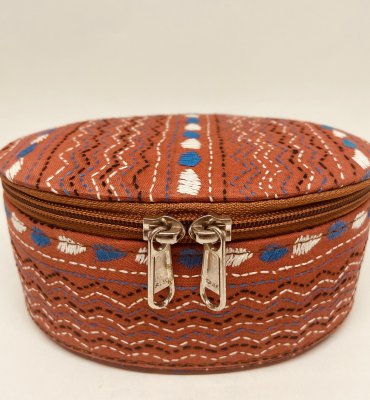 Embroidery jewel case, with a mirror on the lid when you open. Has room to store many of your precious baubles.