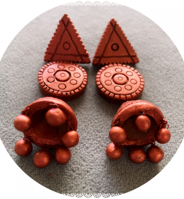 Handcrafted and hand painted terracotta earrings. Terracotta means natural clay. They are made by the artisans in a town named Bishnupur in West Bengal, India.