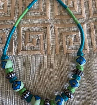 Threads, ceramic bead ethnic necklace.